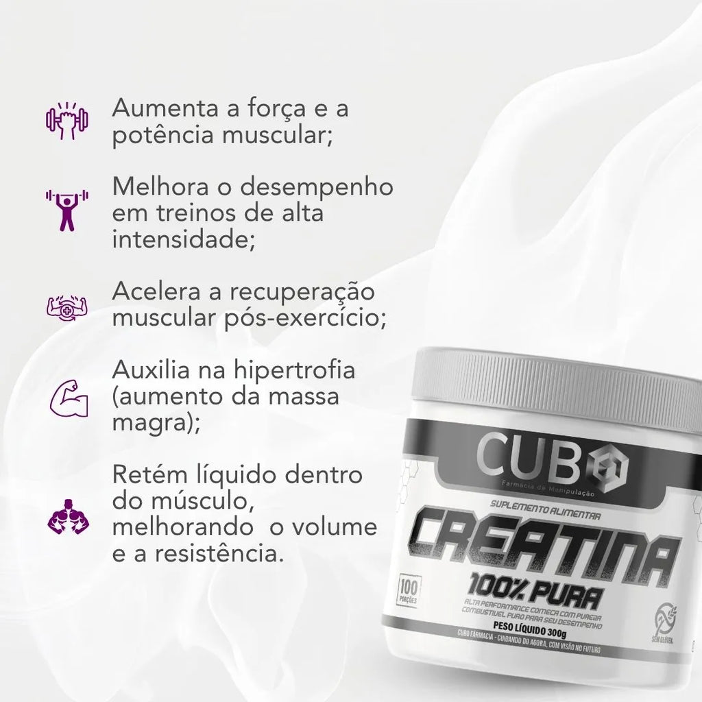 A Creatina Monohidratada é um dos suplementos mais estudados e eficazes do mundo para quem deseja aumentar a força, a resistência e a massa muscular magra. E aqui na CUBO Farmácia, você encontra creatina pura, segura e com máxima absorção.